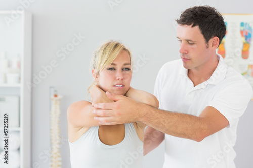 Fototapeta premium Handsome physiotherapist examining patients back