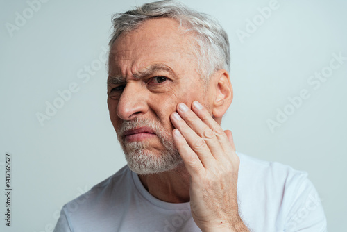 © oneinchpunch, Obraz premium Handsome senior isolated on grey background. Concept about the third age and seniority