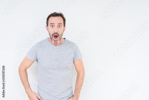© Krakenimages.com, Fototapeta premium Handsome senior man over isolated background afraid and shocked with surprise expression, fear and excited face.