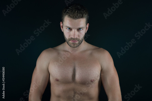 © be free, Fototapeta premium handsome sexy man with muscular body and serious unshaven face