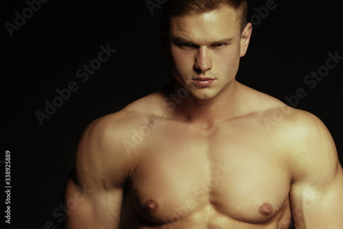 Fototapeta premium Handsome sport sexy stripped guy portrait on isolated black background
