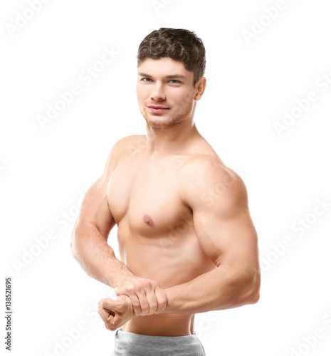 Fototapeta premium Handsome sporty man on white background