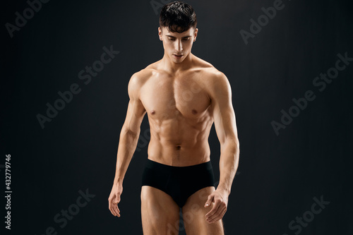 Fototapeta premium handsome sporty man with naked muscled body dark panties studio