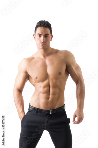 © theartofphoto, Fototapeta premium Handsome topless muscular man standing, isolated
