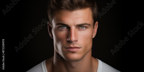 © Graphic Warrior, Fototapeta premium Handsome white man with serious face portrait looking at camera scene