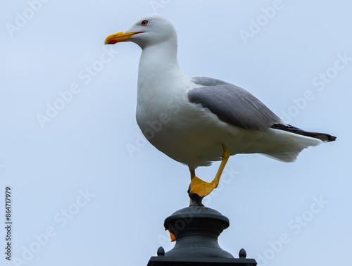 Fototapeta premium Handsome Yellow-Legged Gull on Lamp Post