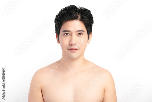 Obraz premium handsome young asian man on white background, Face care, Facial treatment,...