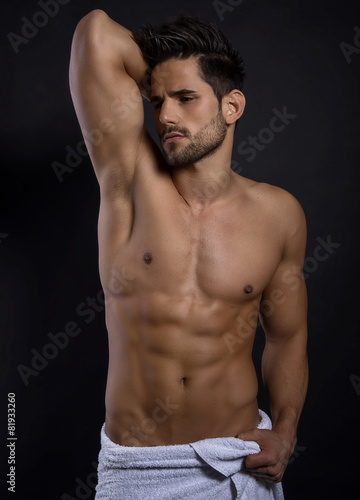 © Anetta, Fototapeta premium handsome young bodybuilder showing of his fit body and muscles