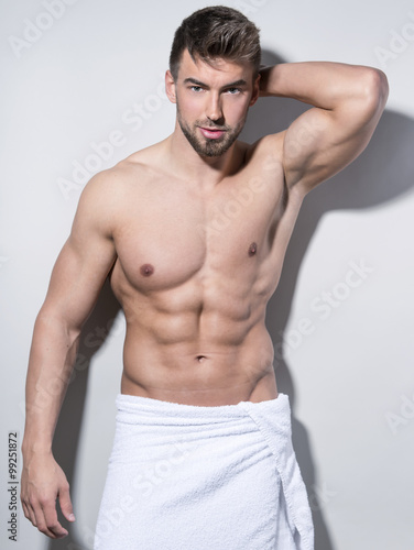 © Anetta, Fototapeta premium handsome young bodybuilder with toned body posing shirtless