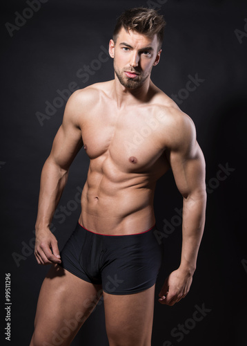 Fototapeta premium handsome young bodybuilder with toned body posing shirtless