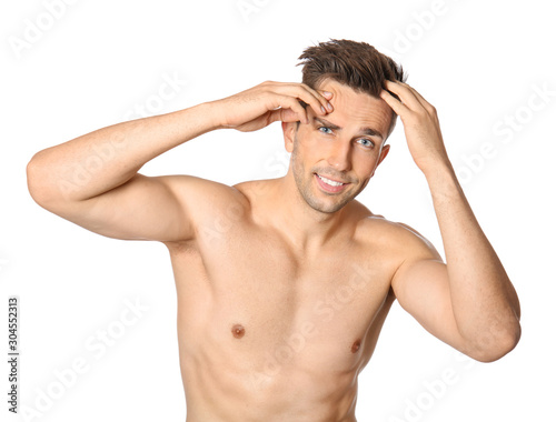 © Pixel-Shot, Fototapeta premium Handsome young man after depilation on white background