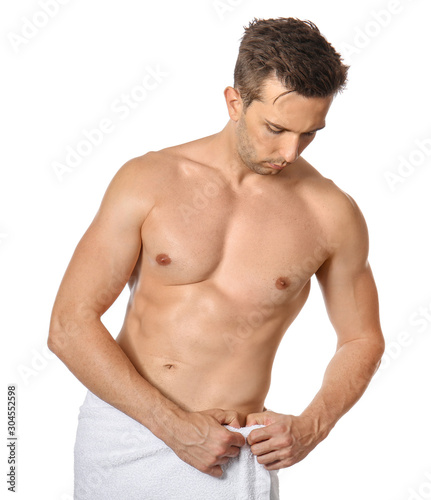 © Pixel-Shot, Fototapeta premium Handsome young man after depilation on white background
