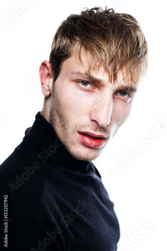 © smmartynenko, Fototapeta premium handsome young man in black jumper posing in studio