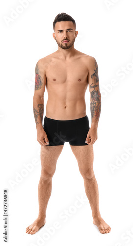 © Pixel-Shot, Fototapeta premium Handsome young man in underwear on white background