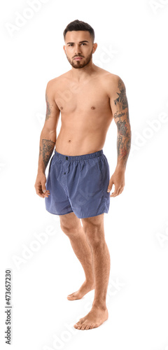 © Pixel-Shot, Fototapeta premium Handsome young man in underwear on white background