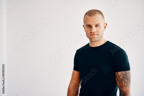 © GVS, Fototapeta premium Handsome young man looking to camera over soft white background