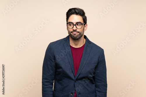 © luismolinero, Fototapeta premium Handsome young man over isolated background making doubts gesture looking side