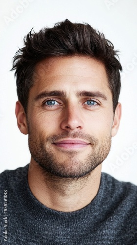 © Minerva Studio, Fototapeta premium Handsome young man smiling and posing on white background