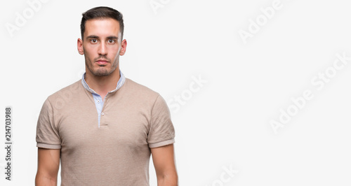 Fototapeta premium Handsome young man with a confident expression on smart face thinking serious