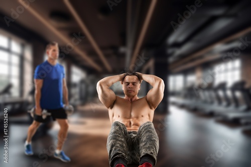 © BillionPhotos.com, Naklejka premium Handsome young sporty muscular man training in gym