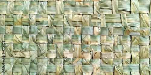 Fototapeta premium Handwoven bamboo pattern, light green and beige a handmade rattan wall texture,Rattan texture, handcraft bamboo weaving texture background, banner