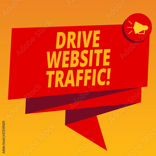 © Zofia, Fototapeta premium Handwriting text Drive Website Traffic. Concept meaning Increase the number of visitors to business website Folded 3D Ribbon Sash Megaphone Speech Bubble photo for Celebration