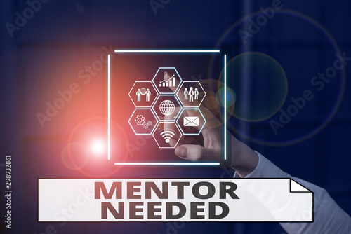 © A, Fototapeta premium Handwriting text writing Mentor Needed. Conceptual photo wanted help for more experienced or more knowledgeable demonstrating Picture photo system network scheme modern technology smart device