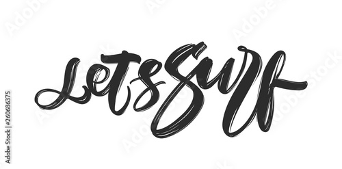 Obraz premium Handwritten brush type lettering of Let's Surf on white background.