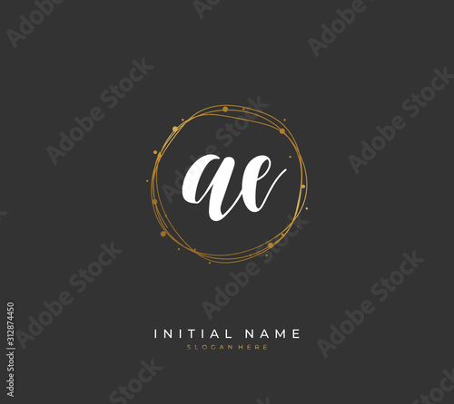 © D'Graphic Studio, Fototapeta premium Handwritten letter A E AE for identity and logo. Vector logo template with handwriting and signature style.
