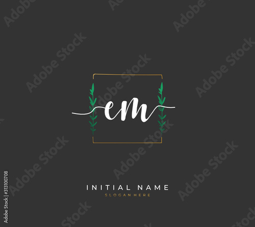 © D'Graphic Studio, Fototapeta premium Handwritten letter E M EM for identity and logo. Vector logo template with handwriting and signature style.