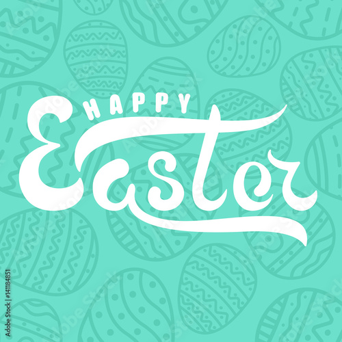 Fototapeta premium Handwritten lettering happy easter on background jade easter egg with ornament