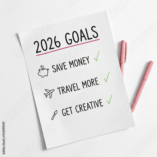 © MdAsiful, Obraz premium Handwritten New Year's Resolution list with 2026 Goals
