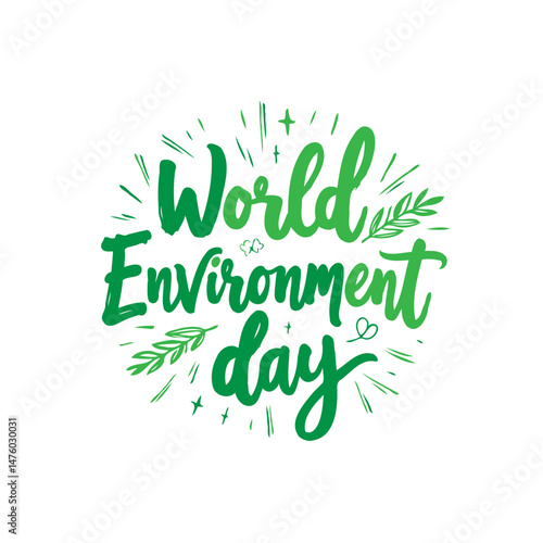 © LgsDesign, Obraz premium Handwritten World Environment Day message with decorative botanical elements