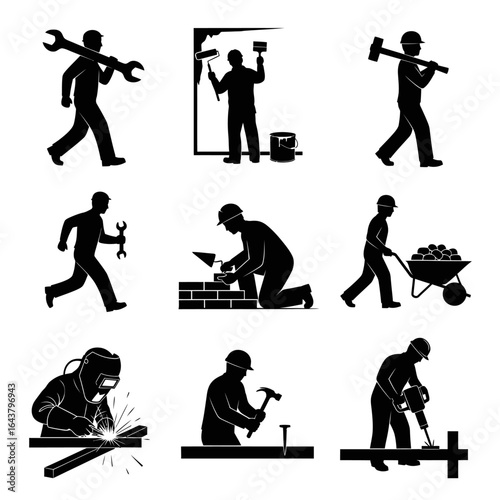 © Alif, Obraz premium Handyman and Builder Activities Icon Collection. Welding, Painting, Drilling, and Building.