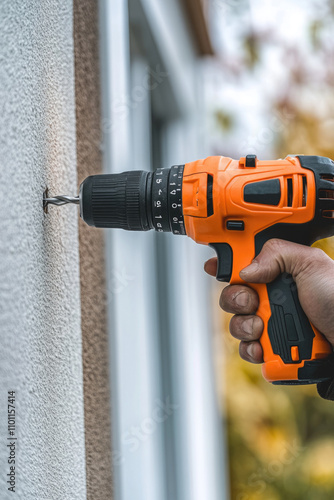 © MK, Naklejka premium Handyman repairs wall