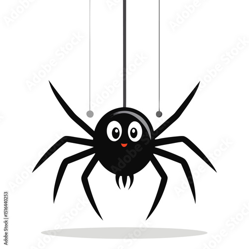 © MARUFHASAN, Obraz premium Hanging Black Spider Cartoon with Happy Face on White Background Illustration