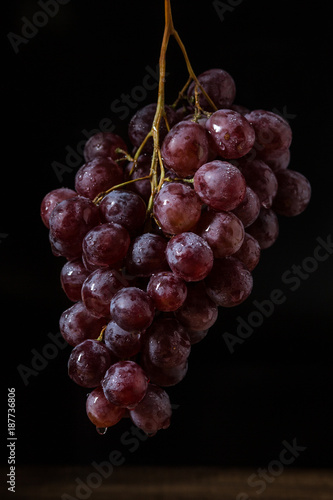 Fototapeta premium Hanging fresh red grapes, vintage style.