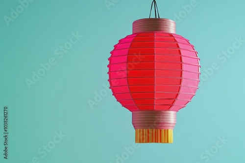 © igor, Obraz premium Hanging red lantern on turquoise background