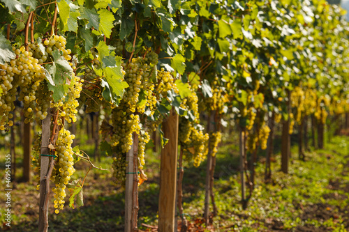 © Victoria, Fototapeta premium Hanging white grapes, selective focus