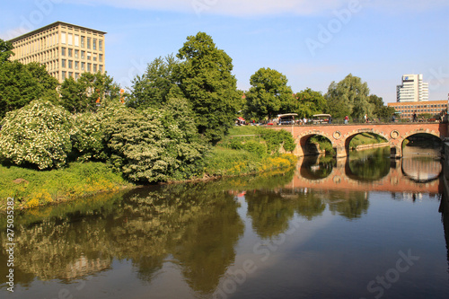 © holger.l.berlin, Fototapeta premium Hannover; Leine mit "Flohmarktbrücke"