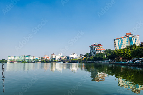 Naklejka premium Hanoi West Lake, or Tay Ho Lake, view in Hanoi, Vietnam. Famous lake in the center of Hanoi, Vietnam