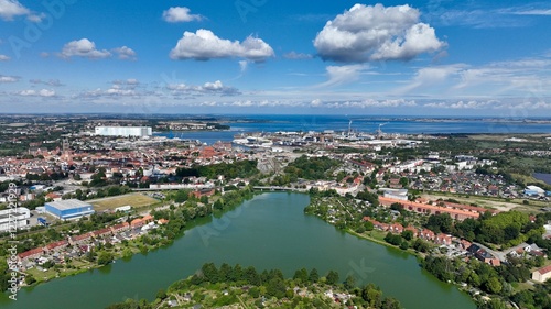 © Moritz Kertzscher, Fototapeta premium Hanseatic city of Wismar in Germany from the air in summer