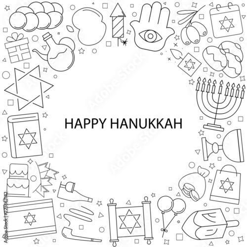 Fototapeta premium Hanukkah background from line icon. Linear vector pattern. Vector illustration