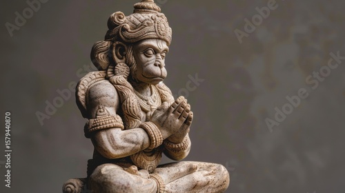 Obraz premium Hanuman statue praying to Rama with powerful muscular form