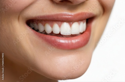 Obraz premium Happiness and Relaxation: CloseUp of Woman's Smiling Mouth with White,...