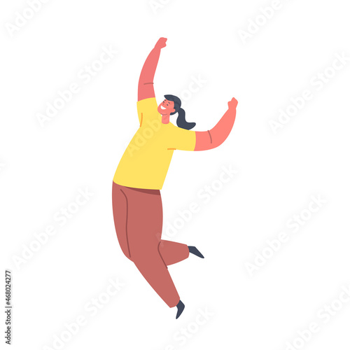 Fototapeta premium Happiness, Childhood and Freedom, Concept. Happy Kid Jumping in Air. Schoolgirl Rejoice for Summer Holidays or Vacation