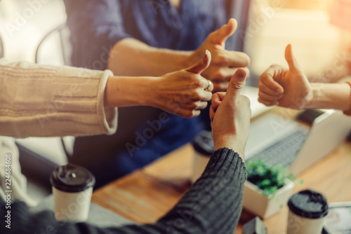© whyframeshot, Obraz premium happiness friend hand together successful happiness ideas concept
