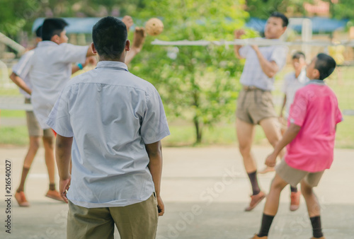 Obraz premium Happiness Students play sepak takraw in the afternoon.