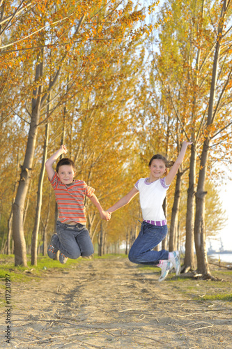© icarmen13, Fototapeta premium Happy active children jumping