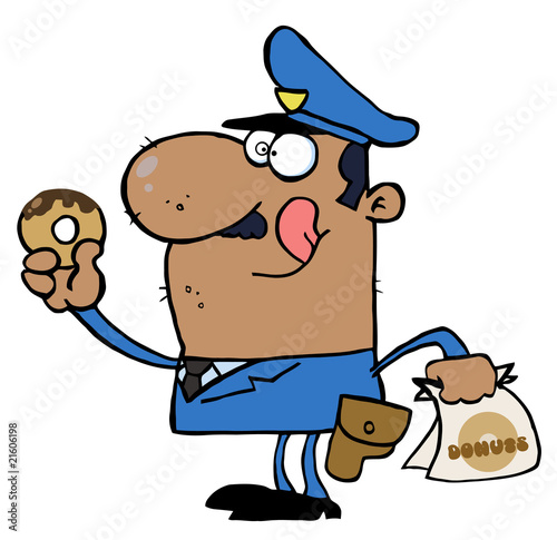 © HitToon.com, Fototapeta premium Happy African American Police Officer Eating Donut